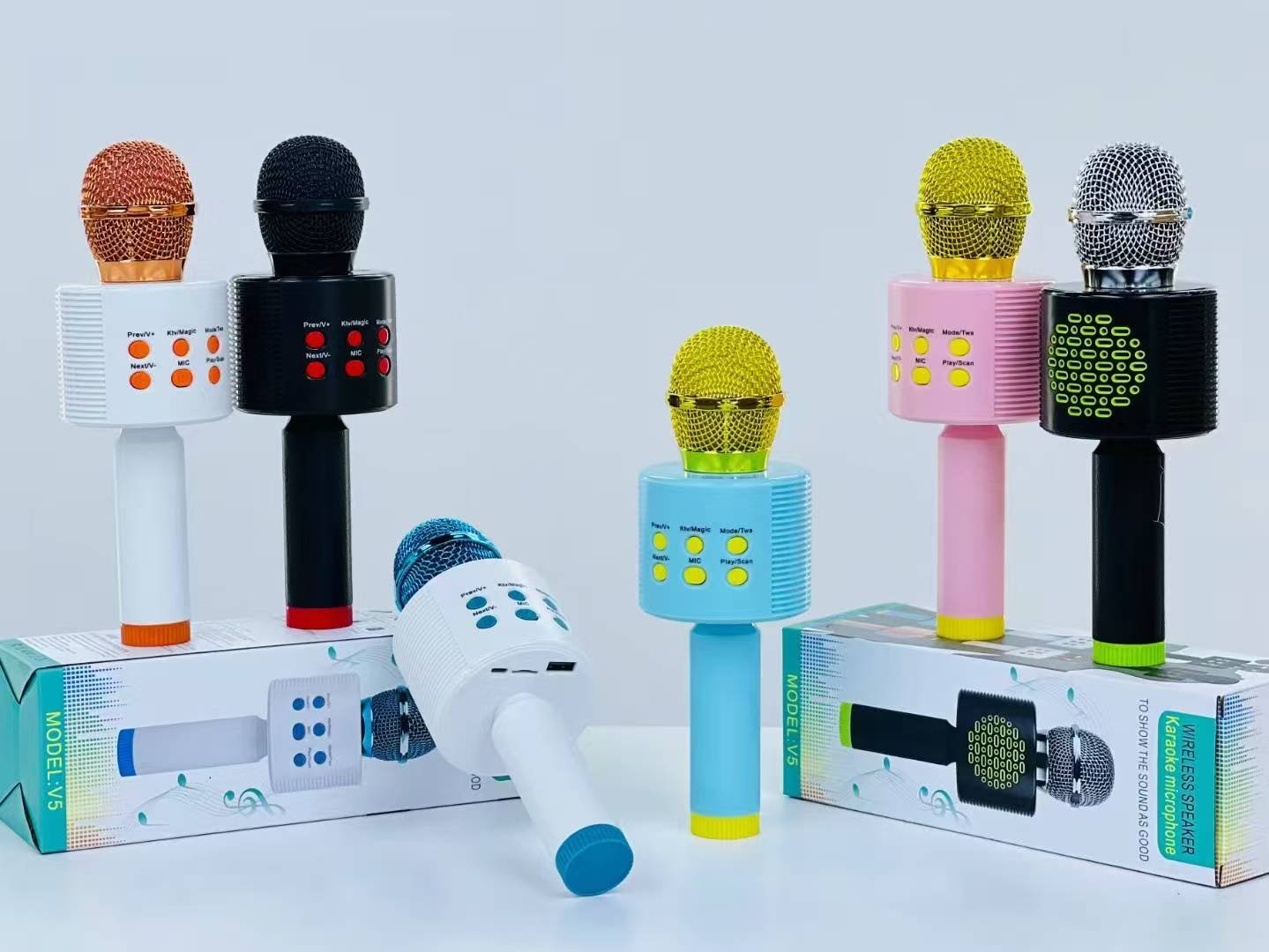 Turn any gathering into a party with the Model V5 Wireless Karaoke Microphone. This all-in-one entertainment system is "Wireless Speaker Karaoke Microphone To Show The Sound As Good," as described on the packaging. It eliminates the need for bulky karaoke machines by packing a high-quality speaker and microphone into a single, handheld unit.
